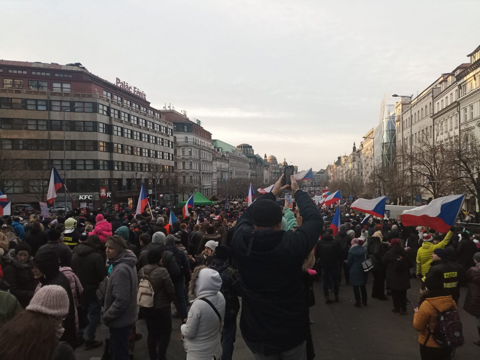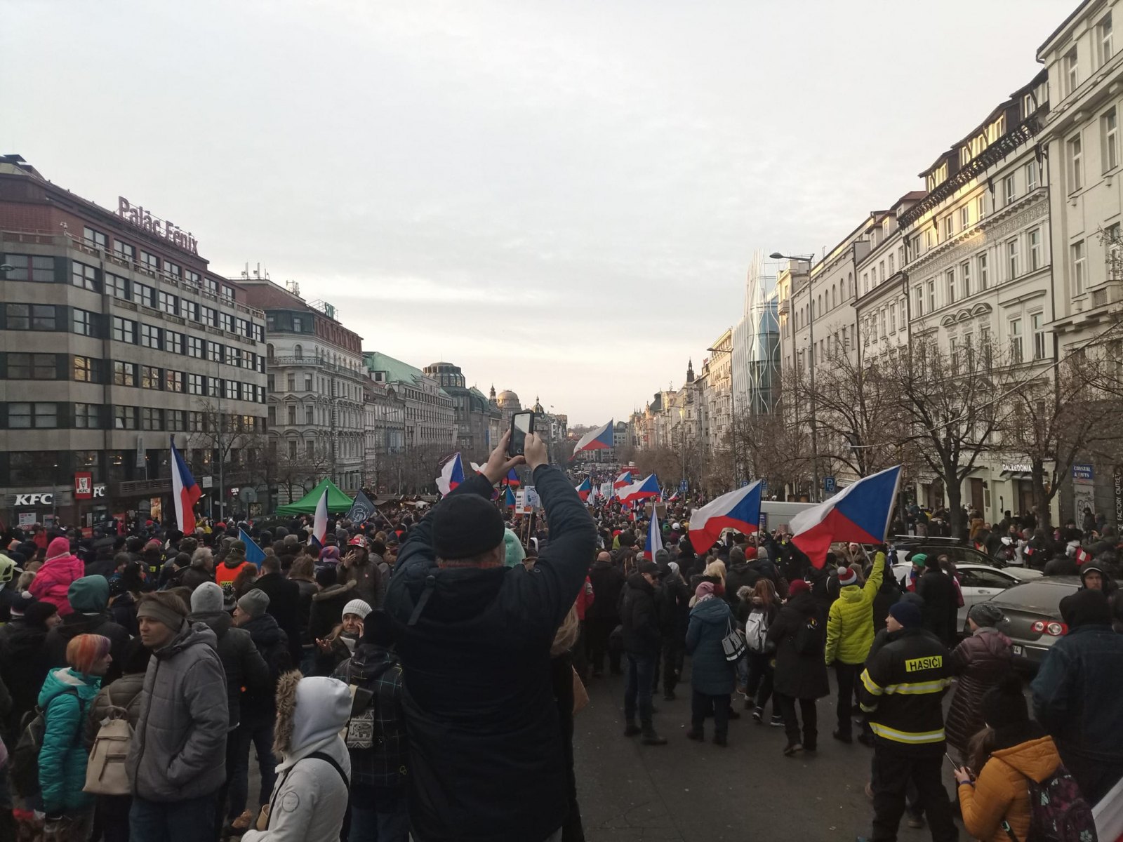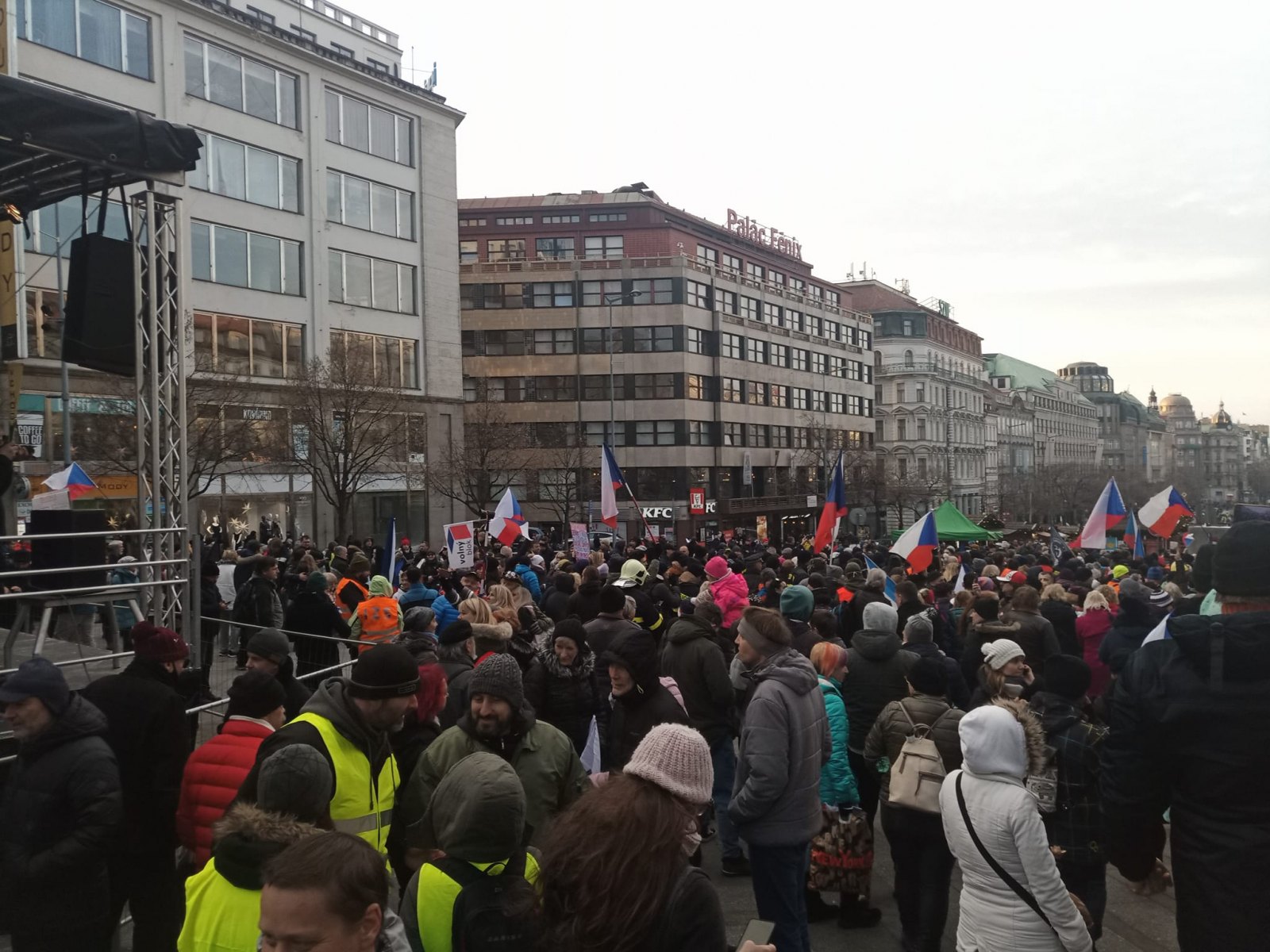 Sešli se lidé ze skupin Chcípl pes, Trikolora, Svobodní, Volného bloku a dalších uskupení, které nesouhlasí s tím, co vláda nařizuje a jak se chová, jak vydává jedno nezákonné nařízení a represní opatření za druhým, proti zákonům a ústavě, a vůbec je to nezajímá. Promluvili zástupci jednotlivých skupin a právníci. A samozřejmě lidi se sešli.